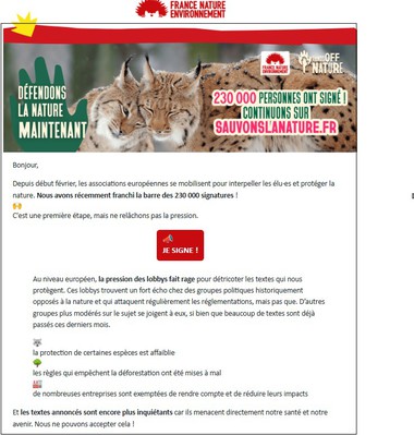 Face aux lois de l'Union Européenne, soumise aux lobbies toujours plus intenses, qui démantèlent les règles les plus essentielles à notre existence, la fédération nationale France Nature Environnement et de nombreuses associations européennes lancent une mobilisation européenne urgente (lire ici aussi).